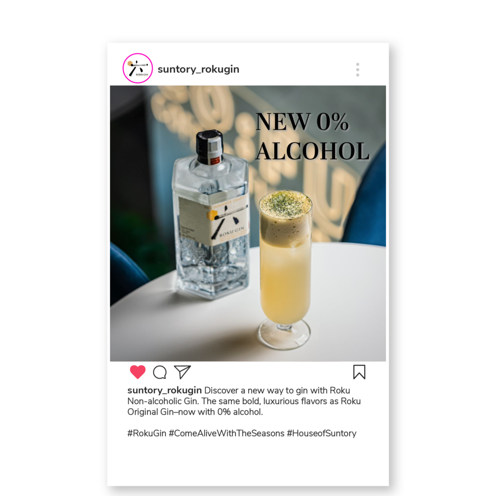 COPY: Discover a new way to gin with Roku Non-alcoholic Gin. The same bold, luxurious flavors as Roku Original Gin–now with 0% alcohol. Nothing compares to this. #RokuGin #ComeAliveWithTheSeasons #HouseofSuntory