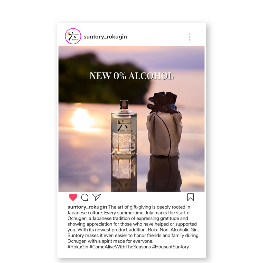 COPY: The art of gift-giving is deeply rooted in Japanese culture. Every summertime, July marks the start of Ochugen, a Japanese tradition of expressing gratitude and showing appreciation for those who have helped or supported you. With its newest product addition, Roku Non-Alcoholic Gin, Suntory makes it even easier to honor friends and family during Ochugen with a spirit made for everyone. #RokuGin #ComeAliveWithTheSeasons #HouseofSuntory